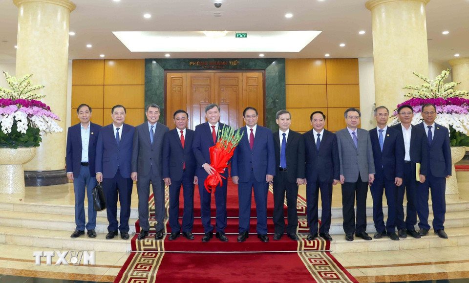 Thường trực Ban Bí thư Trần Cẩm Tú, Thủ tướng Chính phủ Phạm Minh Chính cùng các đồng chí lãnh đạo Đảng, Nhà nước với Lãnh đạo 5 cơ quan: Đài Truyền hình Việt Nam, Đài Tiếng nói Việt Nam, Thông tấn xã Việt Nam, Viện Hàn lâm Khoa học xã hội Việt Nam, Viện Hàn lâm Khoa học và Công nghệ Việt Nam